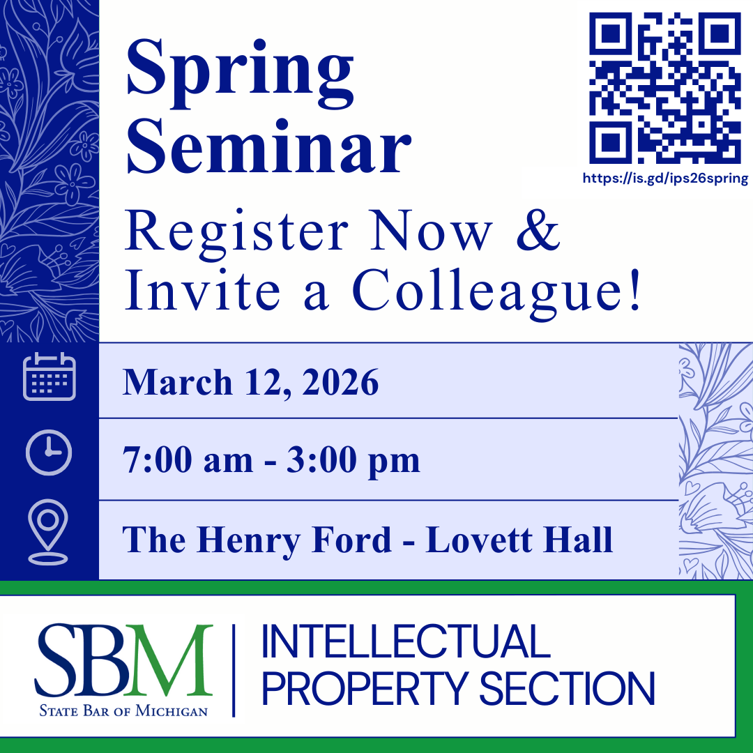 Come join us at this year's Spring Seminar! The 2026 Spring Seminar will feature thought leaders addressing key intersections in intellectual property, including global brand strategy, tax considerations, and evolving roles and responsibilities for in-house counsel. Highlights will include insights on aligning IP with marketing and product strategy to drive competitive advantage, an expert panel on emerging IP trends, and an exploration of the complex relationship between tax and IP.